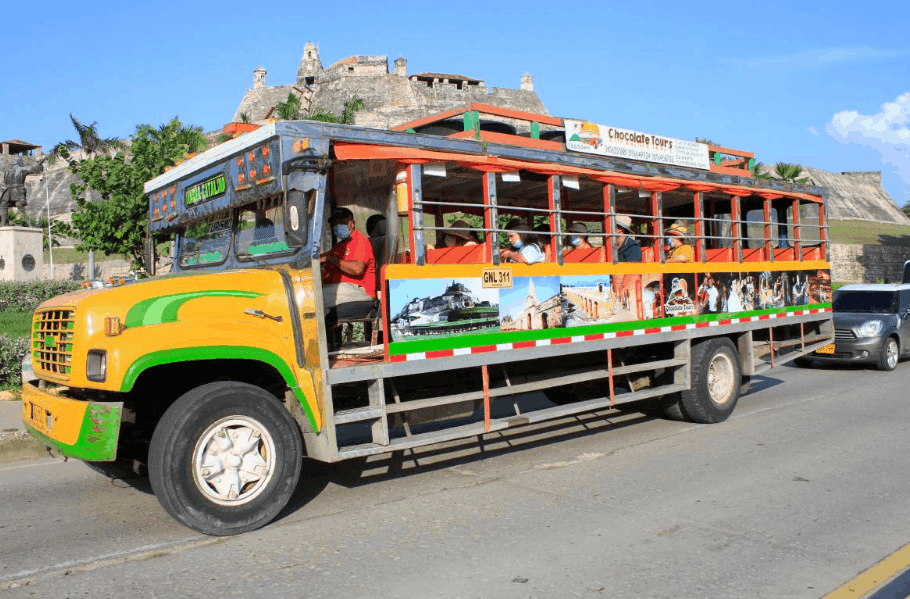 El City tour por Cartagena es un recorrido histórico y cultural para conocer la ciudad y sus sitios turísticos más importantes, es un recorrido de 3 horas aproximadamente pero muy dinámico donde llegaremos a varios puntos principales de la ciudad. El City Tour por Cartagena en Chiva se realiza en este transporte típico de Colombia que resalta por su colorido. Comenzaremos con la vista a las zonas de Bocagrande, Laguito y Castillo Grande, combinación de las zonas más modernas y antiguas de la ciudad. También, visitaremos algunos puntos emblemáticos como la Torre del Reloj, Las botas viejas el castillo San Felipe, desde donde tendremos una de las mejores vistas de Cartagena y el letrero de Cartagena. Ingresaremos al Castillo de San Felipe; un Castillo y Fortaleza construido en homenaje al rey de España San Felipe de Barajas. Esta es una de las más grandes fortificaciones construidas en la colonia española el cual fue usada para la protección de elementos de importancia y usada como cárcel para esclavos africanos. Haremos una parada al sector de Marbella en donde se encuentras la letras con intención de bienvenida a Cartagena. Lugar icónico para tomar una foto. El recorrido en Chiva termina en la ciudad amurallada, desde donde Iniciaremos una caminata por los principales atractivos del centro histórico colonial de Cartagena acompañados por el guía, quien entregará algunos datos importantes de este lugar. Visitaremos y caminaremos sobre la muralla para visualizar el hermoso centro histórico de Cartagena, también podrás ver y tocar los cañones originales de la artillería española, conocer su historia e ingresar a una de las garitas de seguridad de la muralla. *Tanto la recogida como el retorno es solo en hoteles ubicados en las zonas de Bocagrande, Laguito y Castillo Grande.Porque reservar City Tour por Cartagena